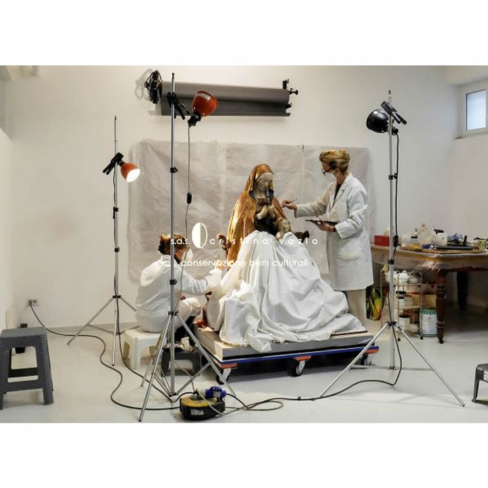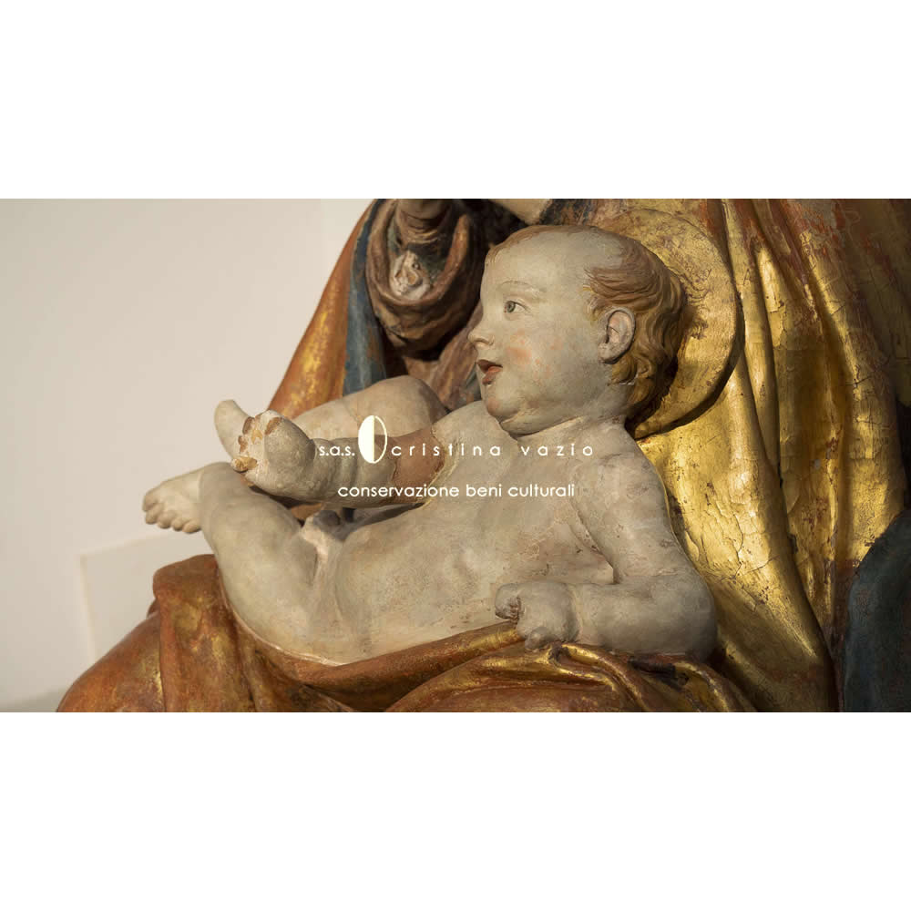 Madonna of Collemaggio is a painted terracotta sculpture created by Saturnino Gatti in 1507. Our restoration intended to complete the emergency interventions carried out by the ICR (Central Institute of Restoration) immediately after the 2009 earthquake, which involved the movement of the sculpture from the Basilica of Collemaggio to the National Museum of Abruzzo (Munda). At the end of the restoration work, the statue returned to the Basilica of Collemaggio, inside the original niche in the right transept.